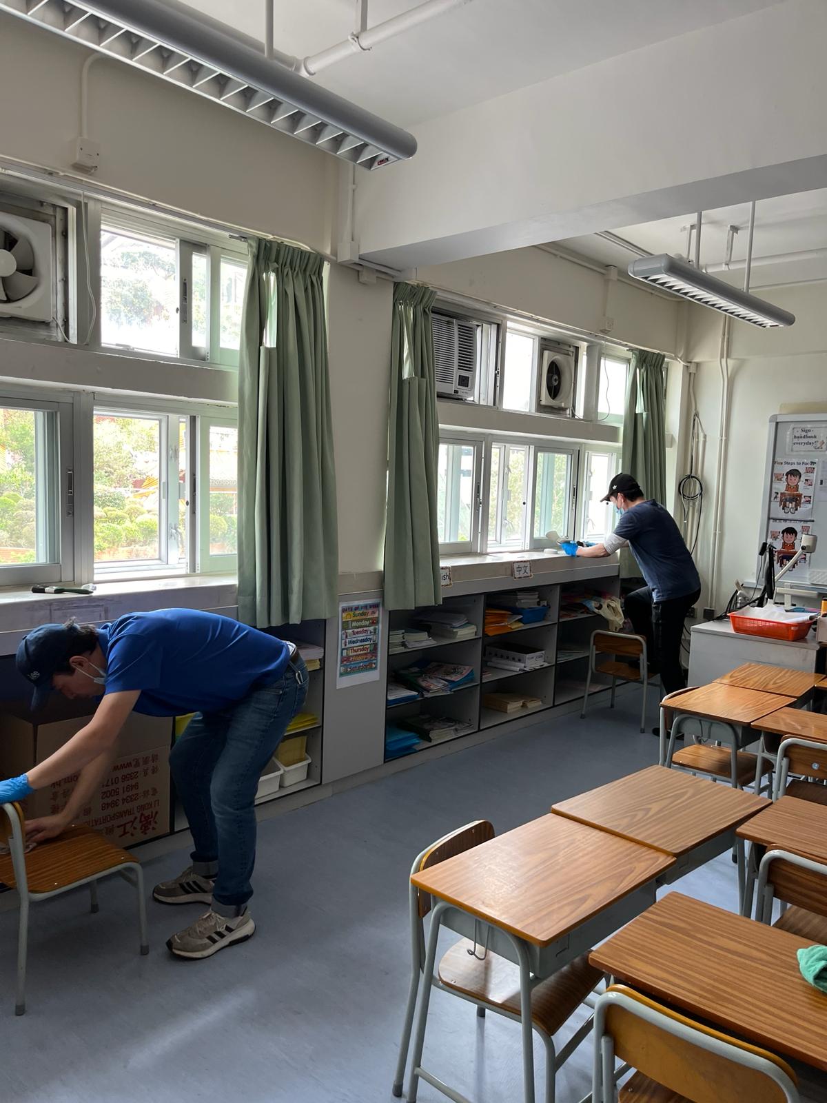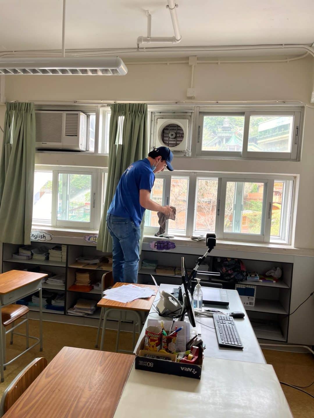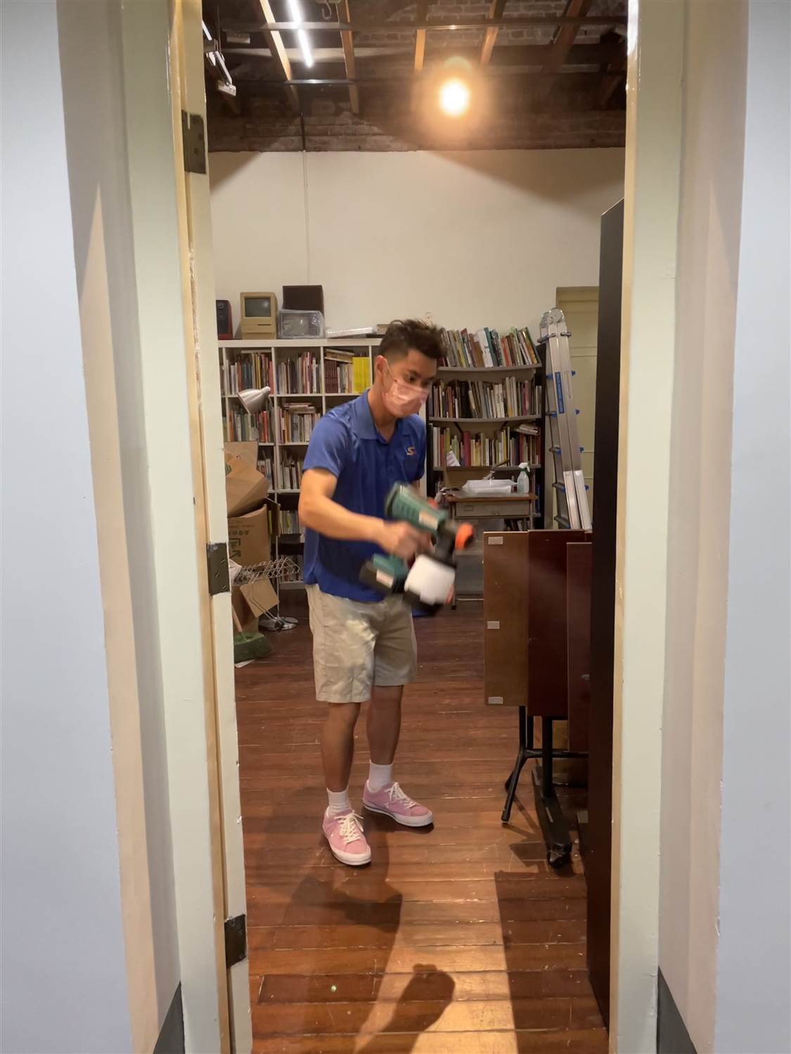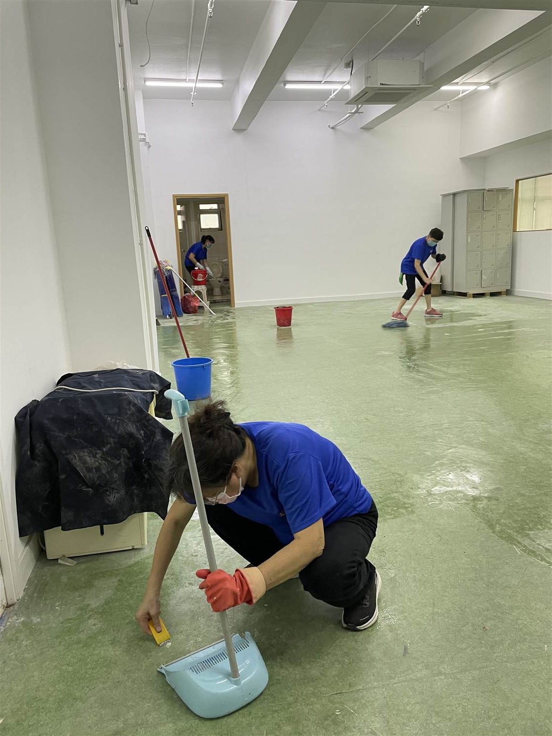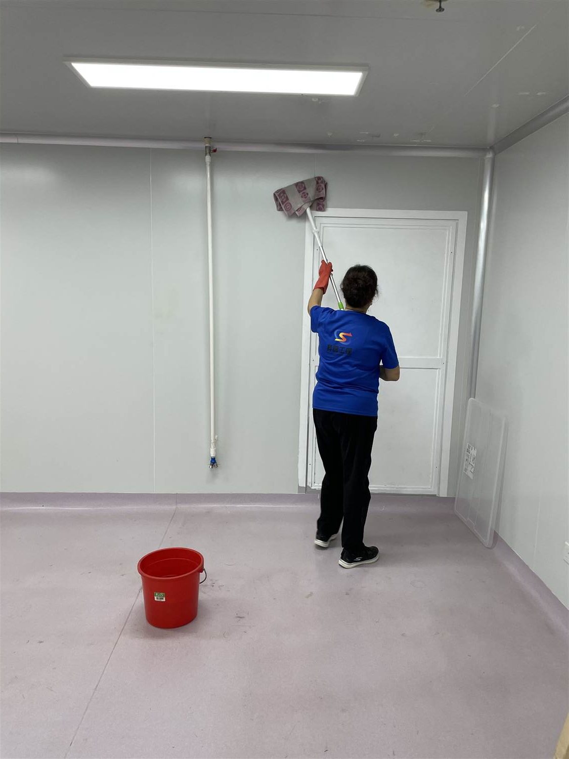 - 工業 HEPA 吸塵器處理牆面、天花、地面、櫃內、電線槽、窗軌與踢腳線。